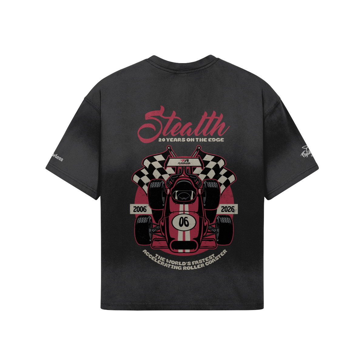 Celebrate 20 Years on The Edge with this vibrant Stealth-inspired tie-dye vintage style tee, celebrating the world’s fastest accelerating roller coaster’s 20th birthday! Featuring various references to the coaster, its theming and much more – this garment is printed directly onto the fabric (no cheap vinyl transfers here!) using the highest quality vibrant vegan inks available, ensuring your garment stands the test of time and looks just as awesome as the day you got it for years to come.